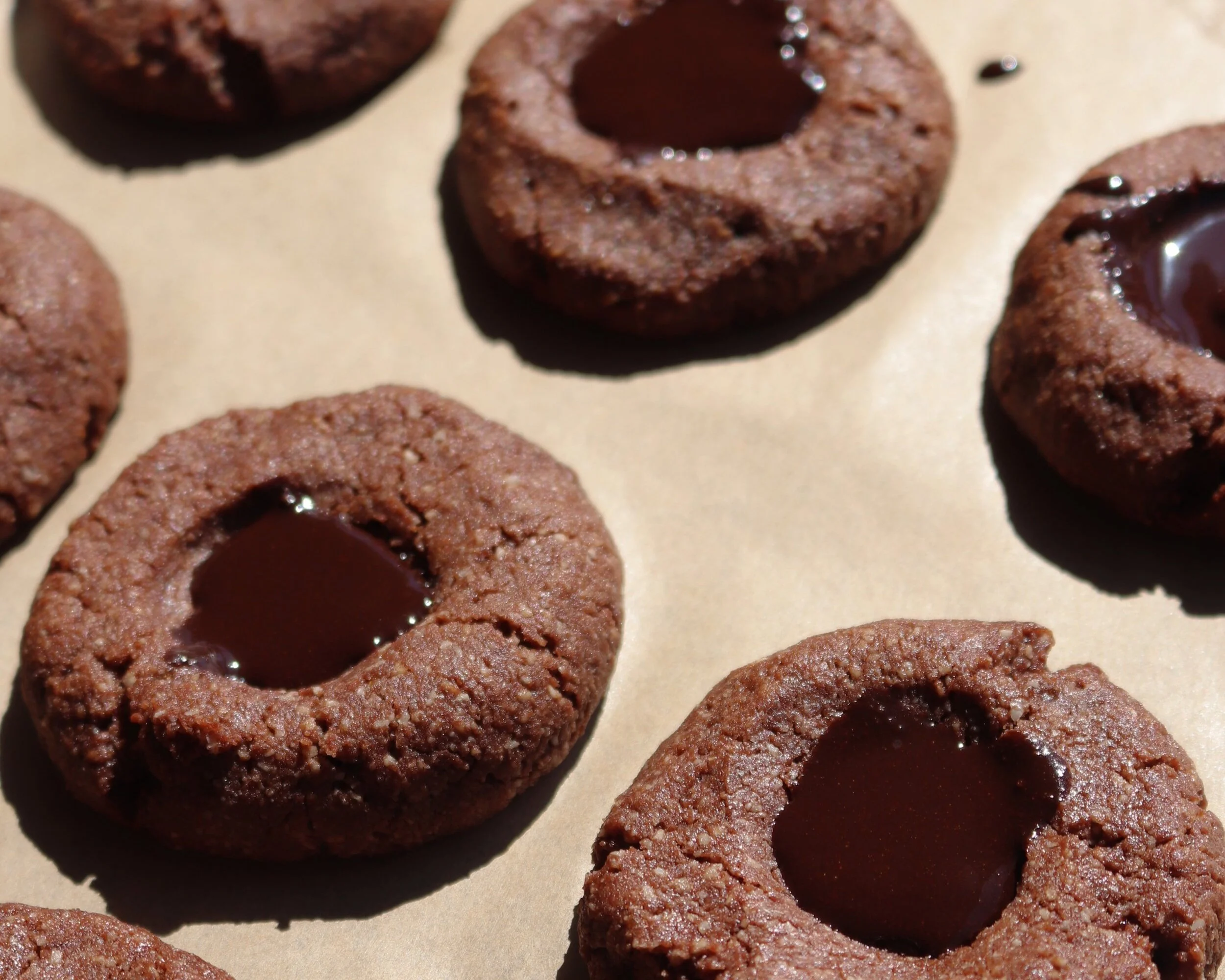 My Choc Drop Cookies are a staple in my household. Not only are they are super easy to make, but they also hit the spot when you get that calling for a sweet little something after lunch or dinner. I like to make variations of this recipe, depending on what ‘food mood’ I am in. Some days, I will swap out the cacao for matcha and add macadamias, and other days I fill the cookies with my raspberry chia jam. The options are endless, and that’s the recipe I pride myself on creating.